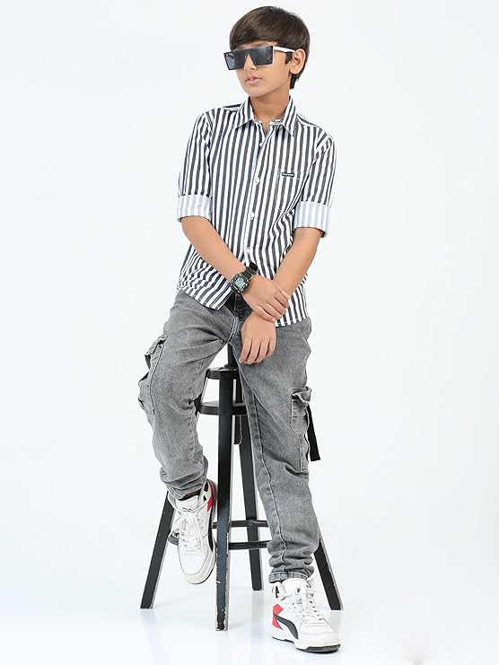 STYLE: Cotton printed full sleeves shirt, featuring adjustable button cuffs. MATERIAL: Crafted from 100% cotton for comfort and breathability. OCCASION: Ideal for casual wear, perfect for boys looking for both style and comfort. FEATURE: Comes with adjustable cuffs using buttons for customizable fit and style. Reviews There are no reviews yet. Be the first to review “Boy’s Casual Cotton Blended Striped Regular Fit Shirt.”Cancel ReplyYour email address will not be published. Required fields are marked *Your rating * Rate… Perfect Good Average Not that bad Very poor Name *Email *Your review * Save my name, email, and website in this browser for the next time I comment. Submit