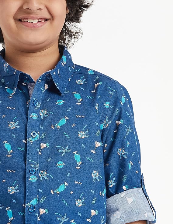 Regular Fit Boys 100% Cotton Printed Full Sleeves Shirt | Age 2-12 Years